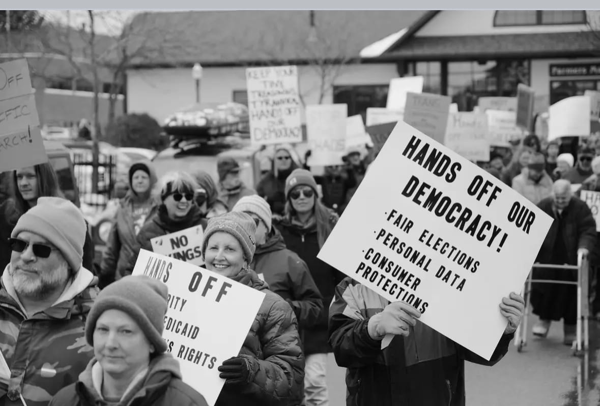 I wasn't able to attend the Hands Off! protest, but I did make some signs for it. I saw one peeking out in a photo of the event on Facebook.
