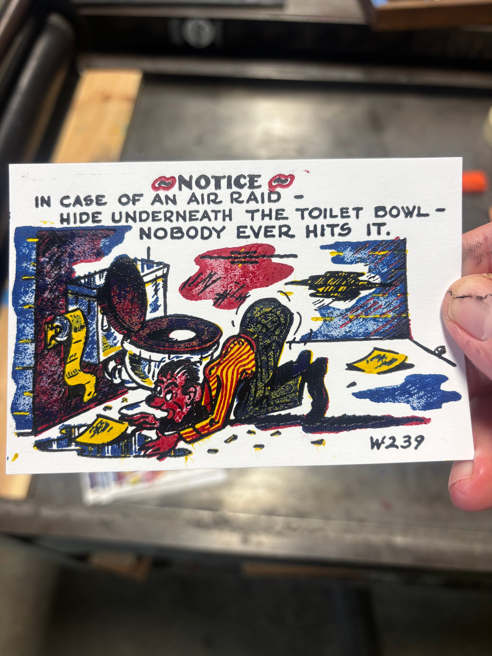 I also finished that initial run of those old postcards. I printed them in YMCK, but next time I might try CMYK. I also eyeballed registration, so sometimes things didn't quite line up, but still turned out pretty neat!